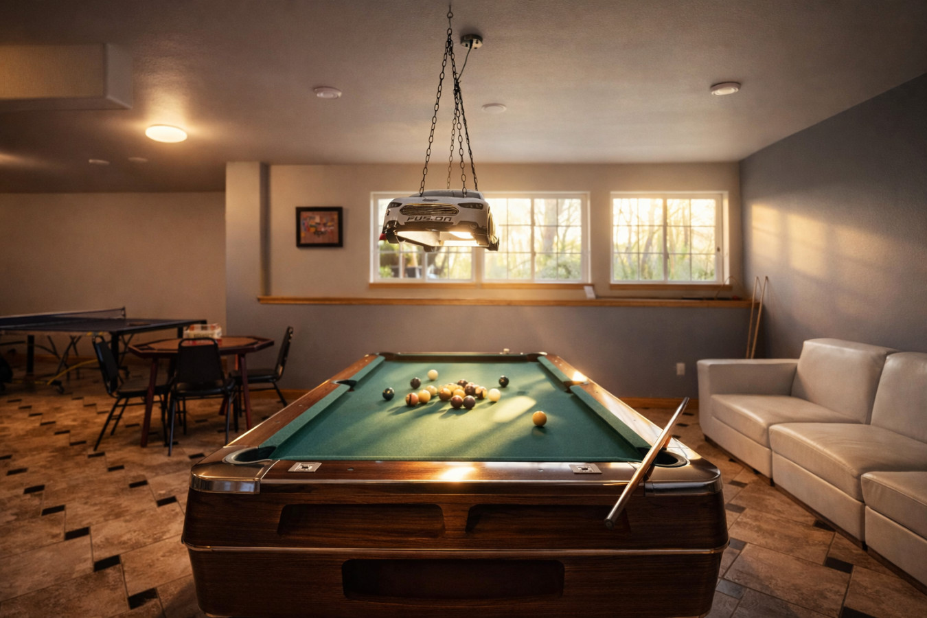 Fully loaded game room with billiards, ping pong & poker