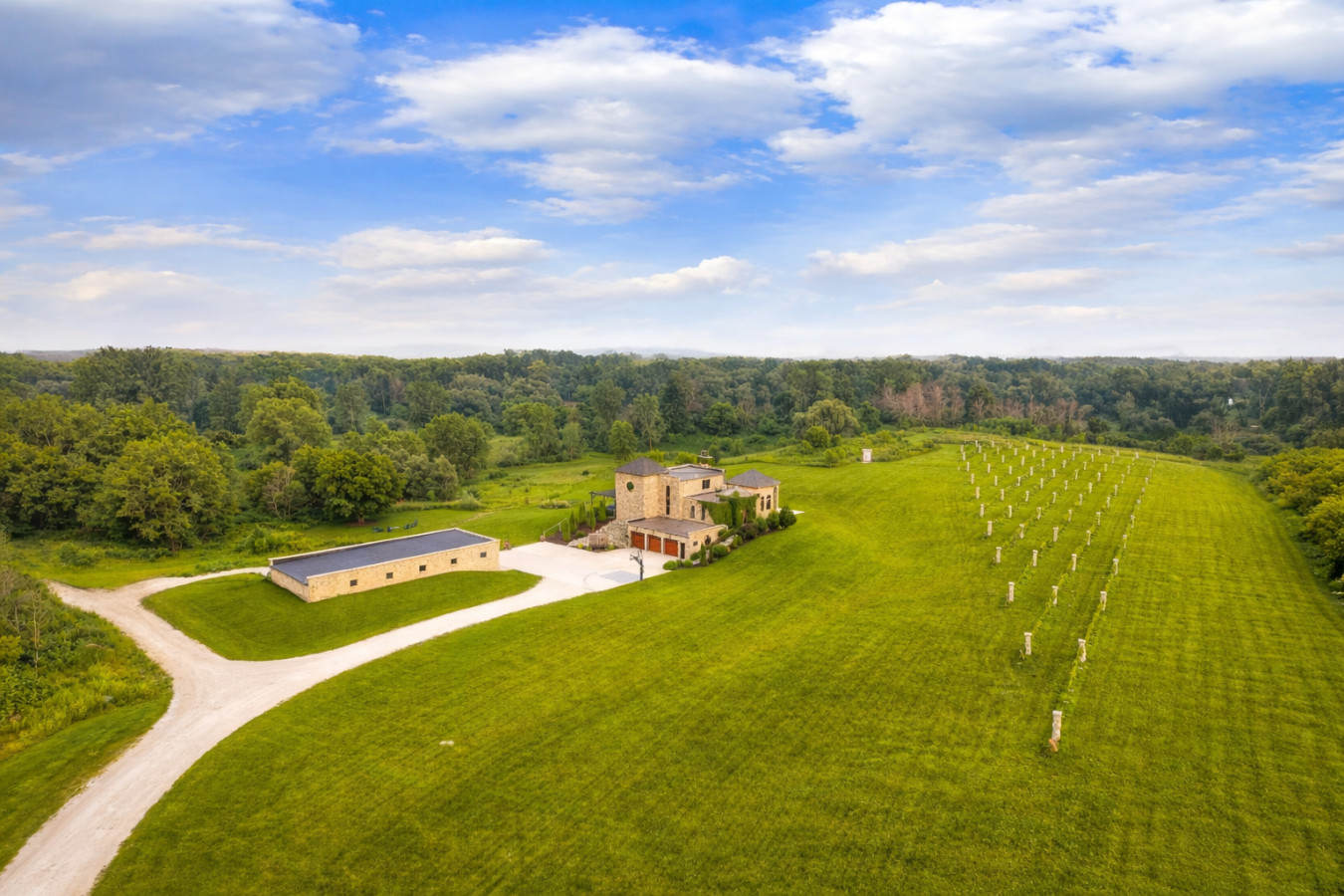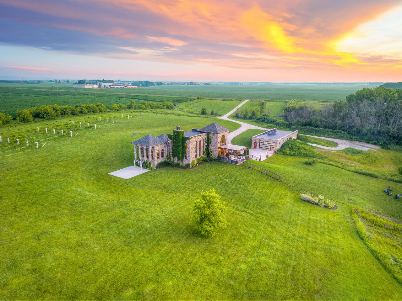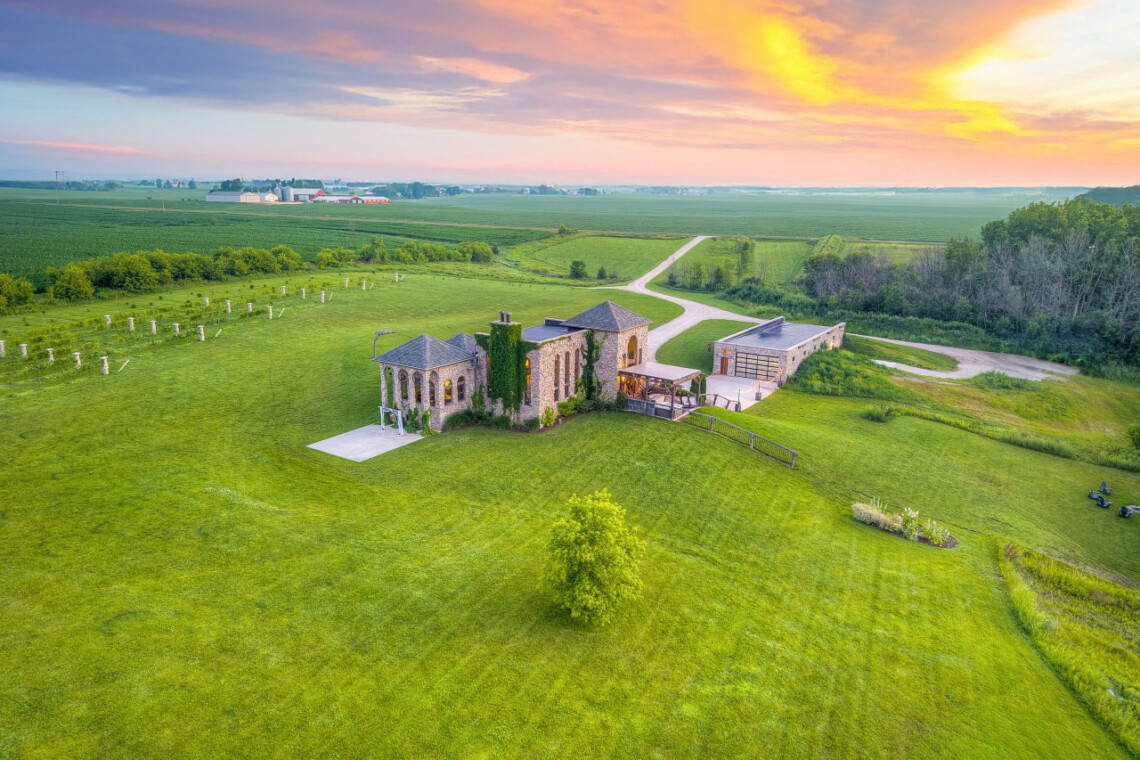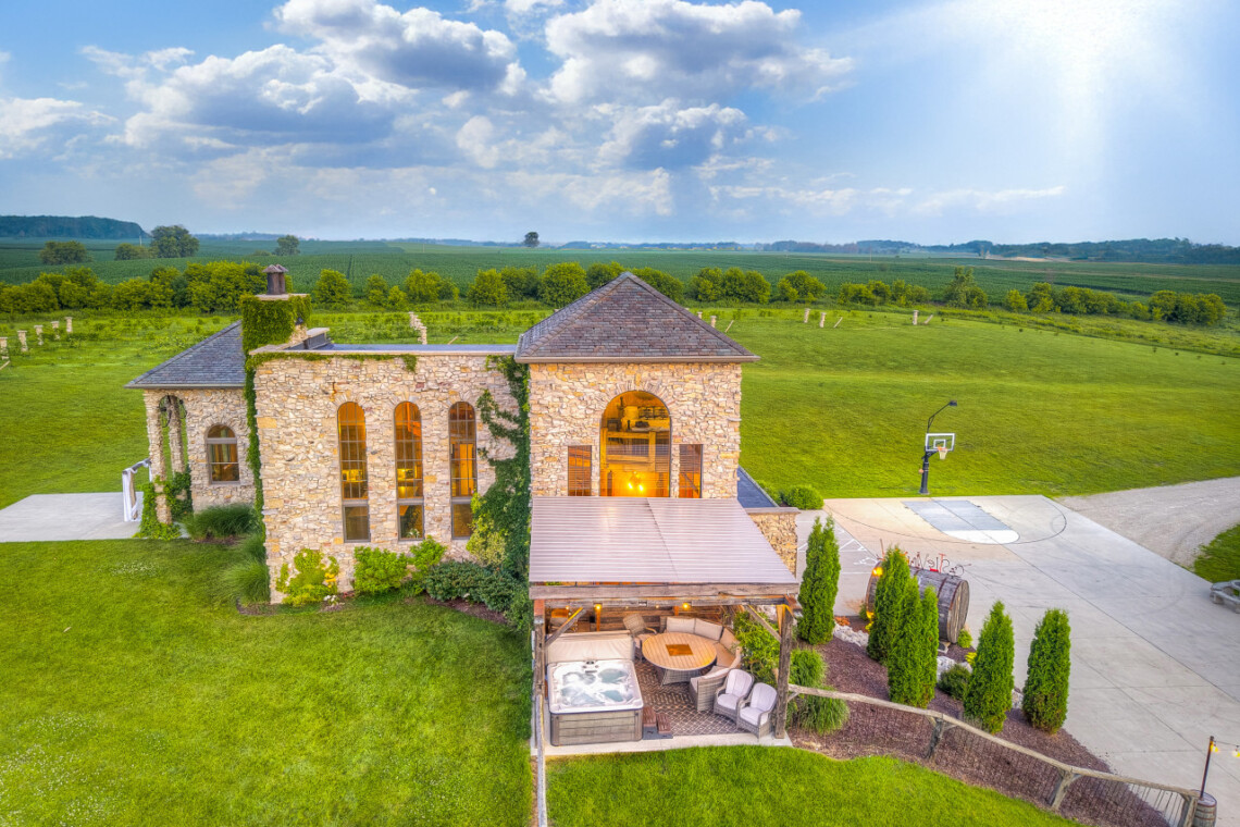 Castle Vineyard is a private castle estate surrounded by vineyard rows on 20 secluded acres in Wisconsin.