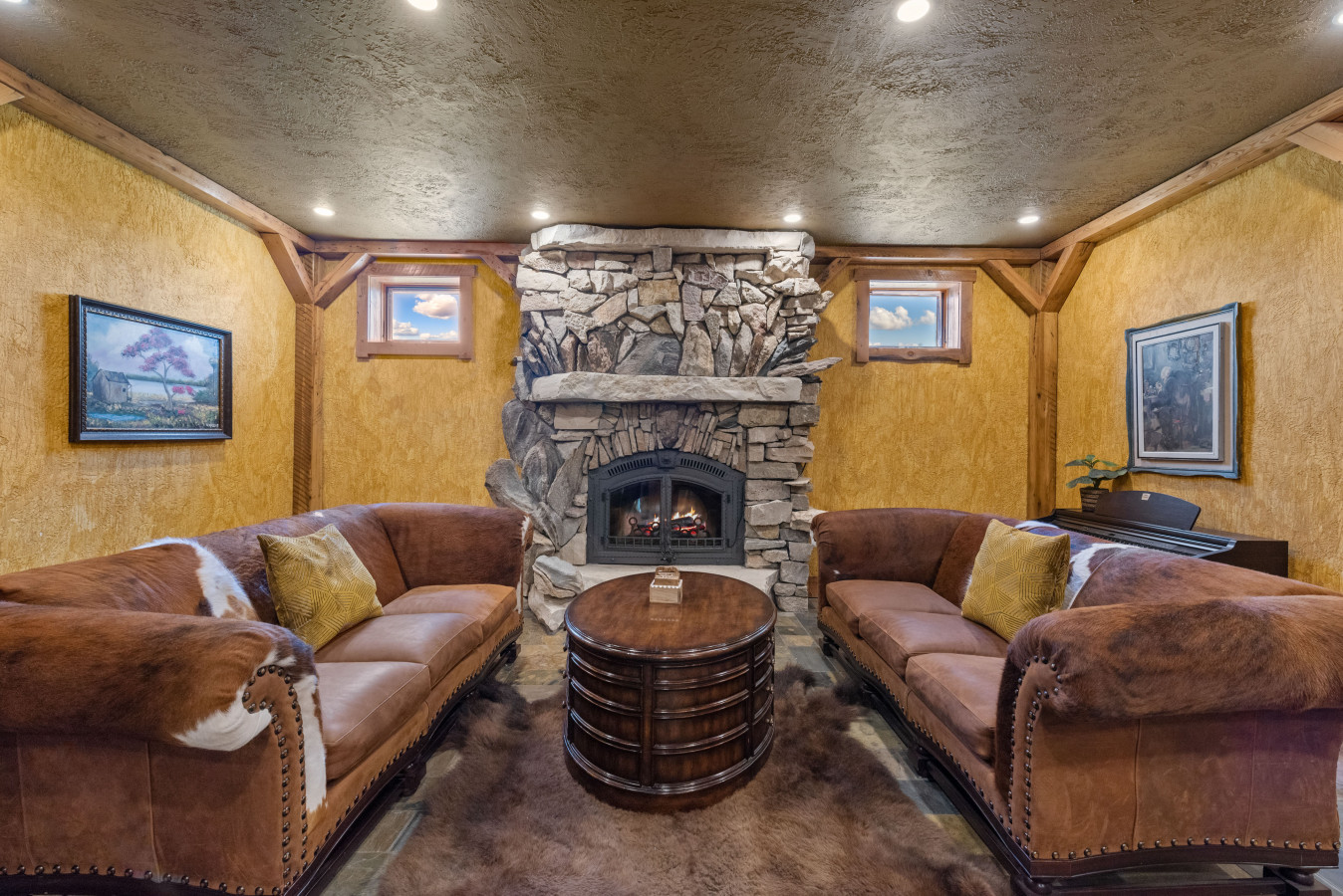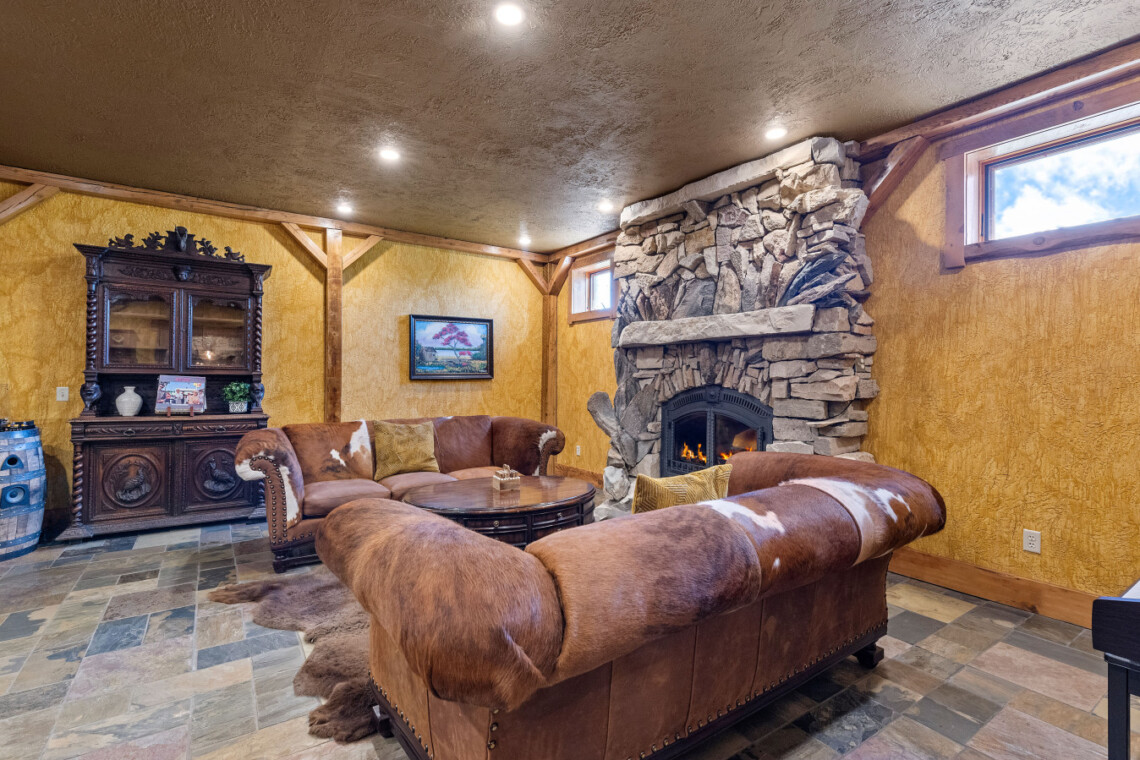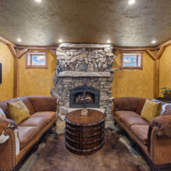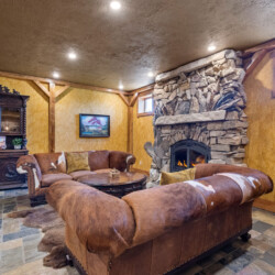 🔥 Lounge with custom stone fireplace and designer furnishings