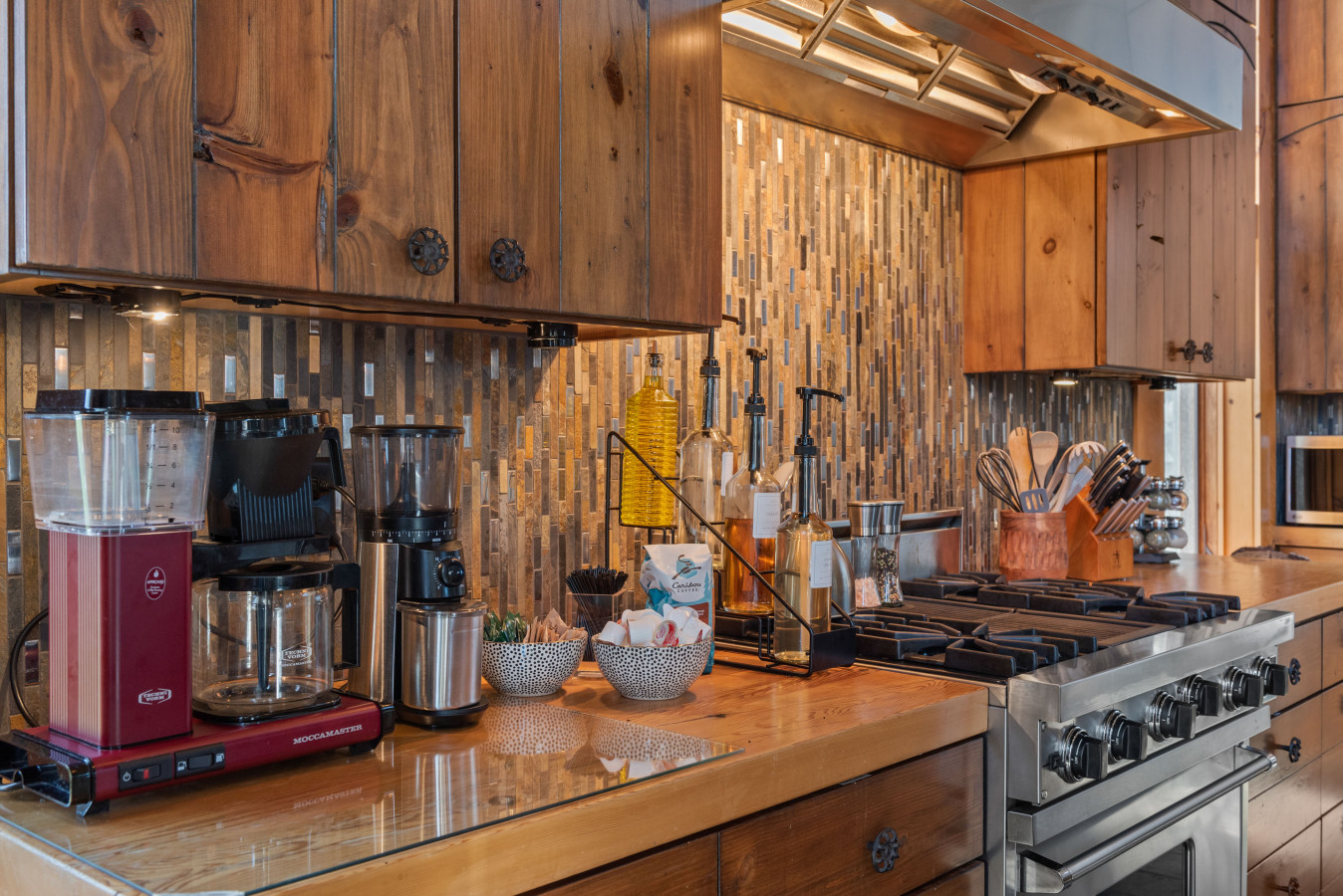 ☕ Coffee station, bar nook, and cocktail lounge