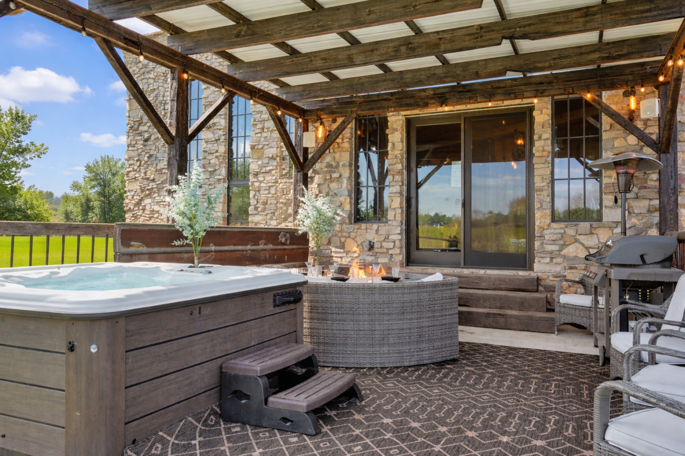 🔥 Fire pit, patio & hot tub