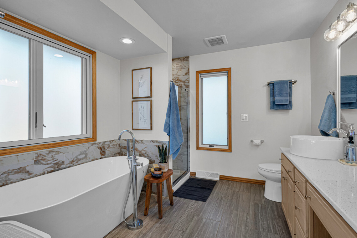 • Primary Suite: King bed + 2 twin pull-outs, ensuite bath w/ soaking tub & shower