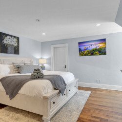 🛏 Master Bedroom (#2) – King bed, gas fireplace overlooking the property, ensuite spa bathroom with a cast iron soaking tub, walk-in shower, and bidet.