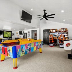 This isn’t your average garage—it’s a fully decked-out entertainment hub designed to kick off game day in style: