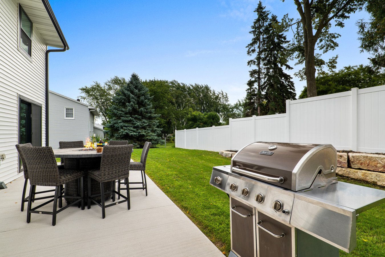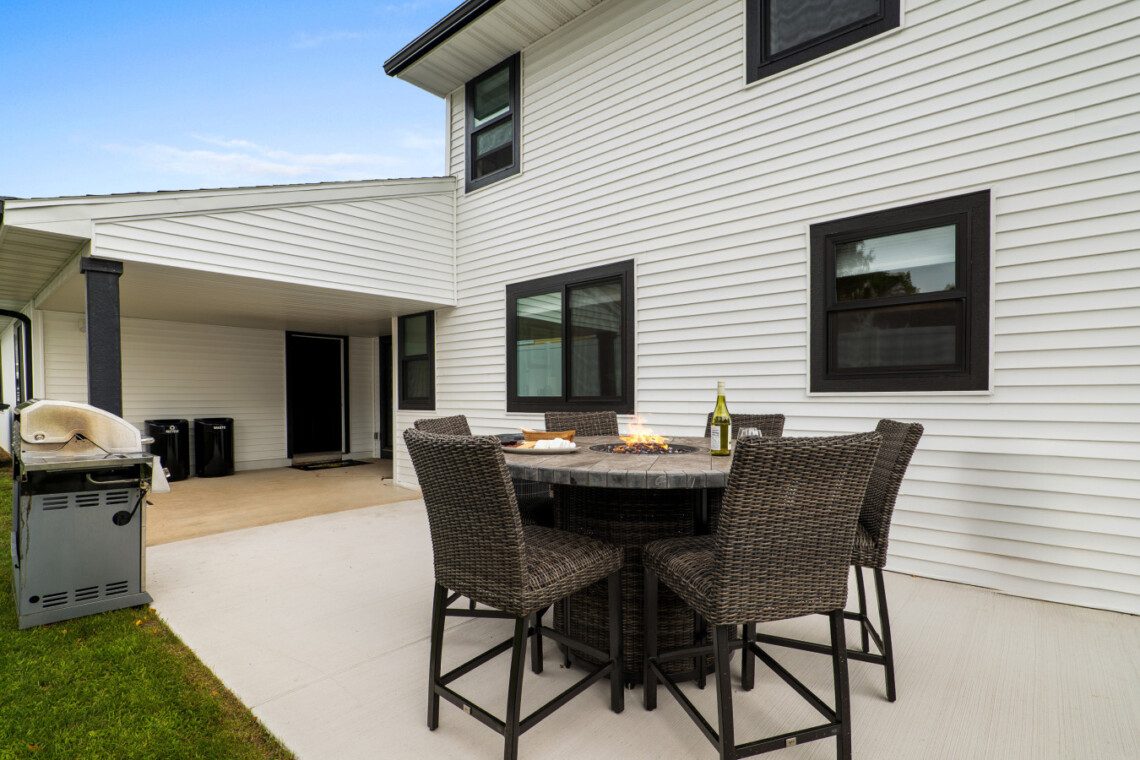 🔥 Private patio with fire table, grill, and outdoor dining