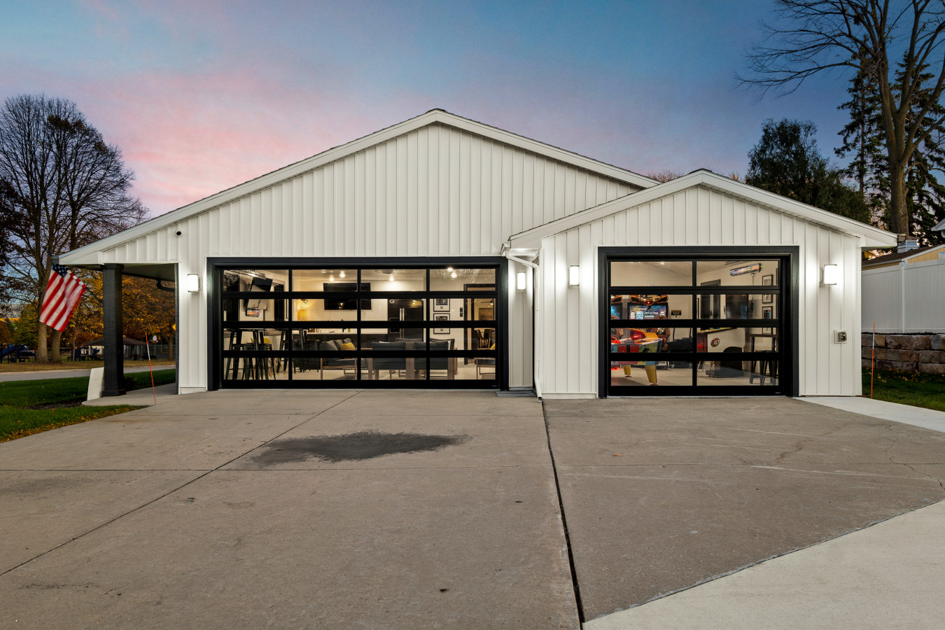 🍻 Wet bar, glass garage doors, 3 TVs—tailgate in style