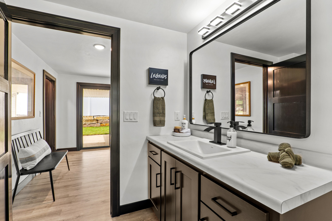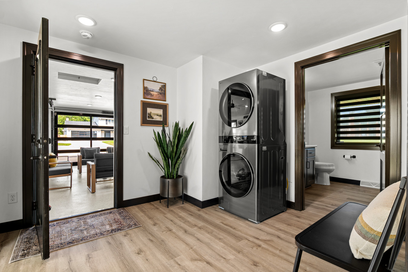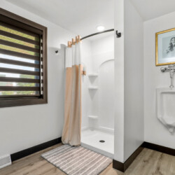 Mudroom entry with full bath and walk-in shower