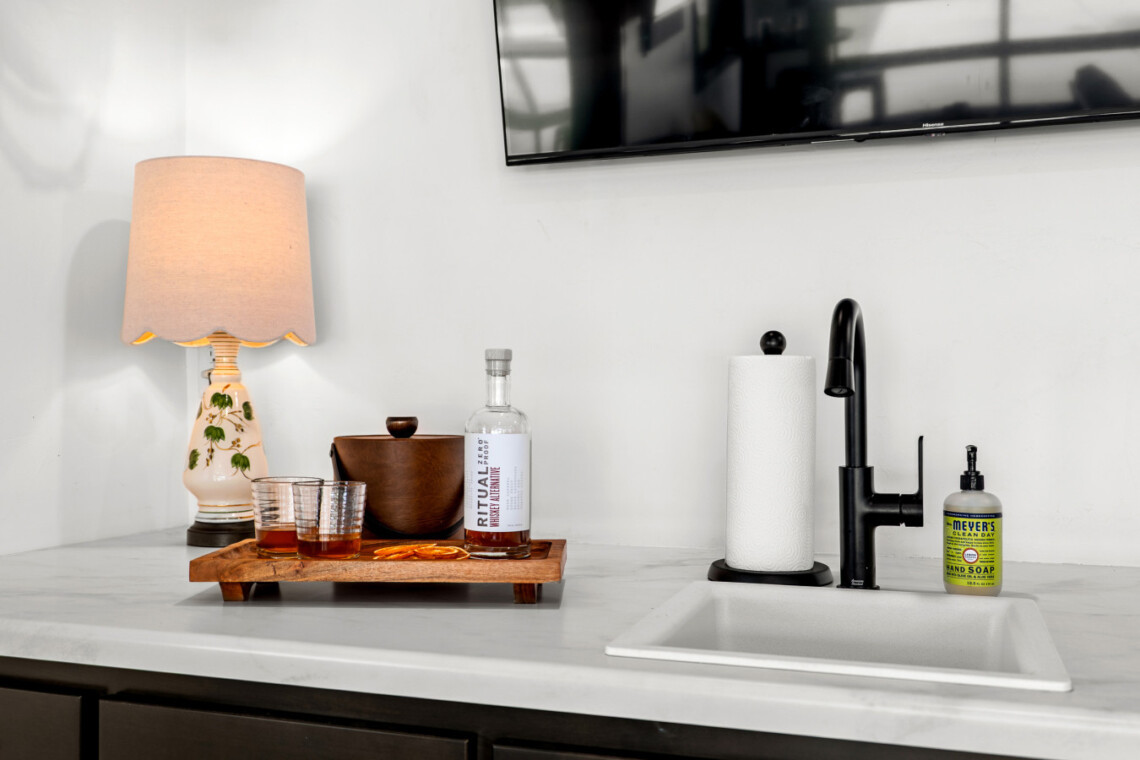 Wet bar with full-sized fridge for game day drinks 🍻