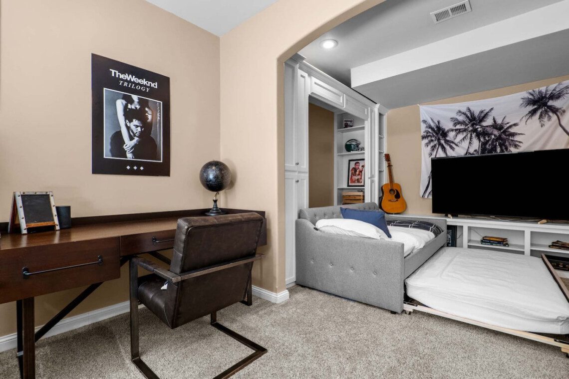 Bedroom 3: Queen + twin trundle with desk setup 🛏