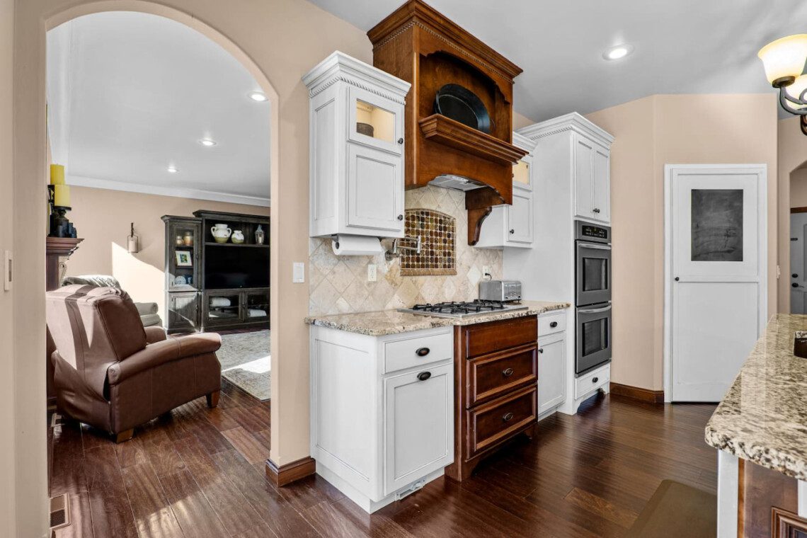 Chef’s Kitchen: Gourmet setup with gas stove, drip coffee maker, whole beans & grinder.