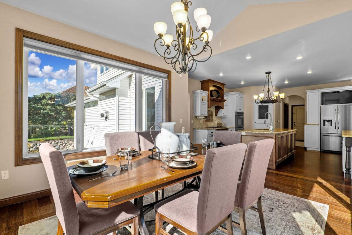 Dining Options: Formal dining (8 seats), sunroom dining (6), plus island seating for 6.