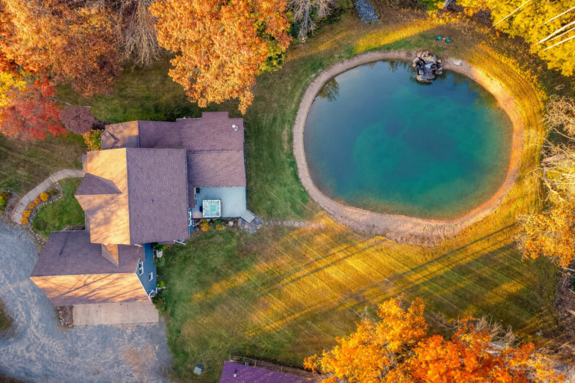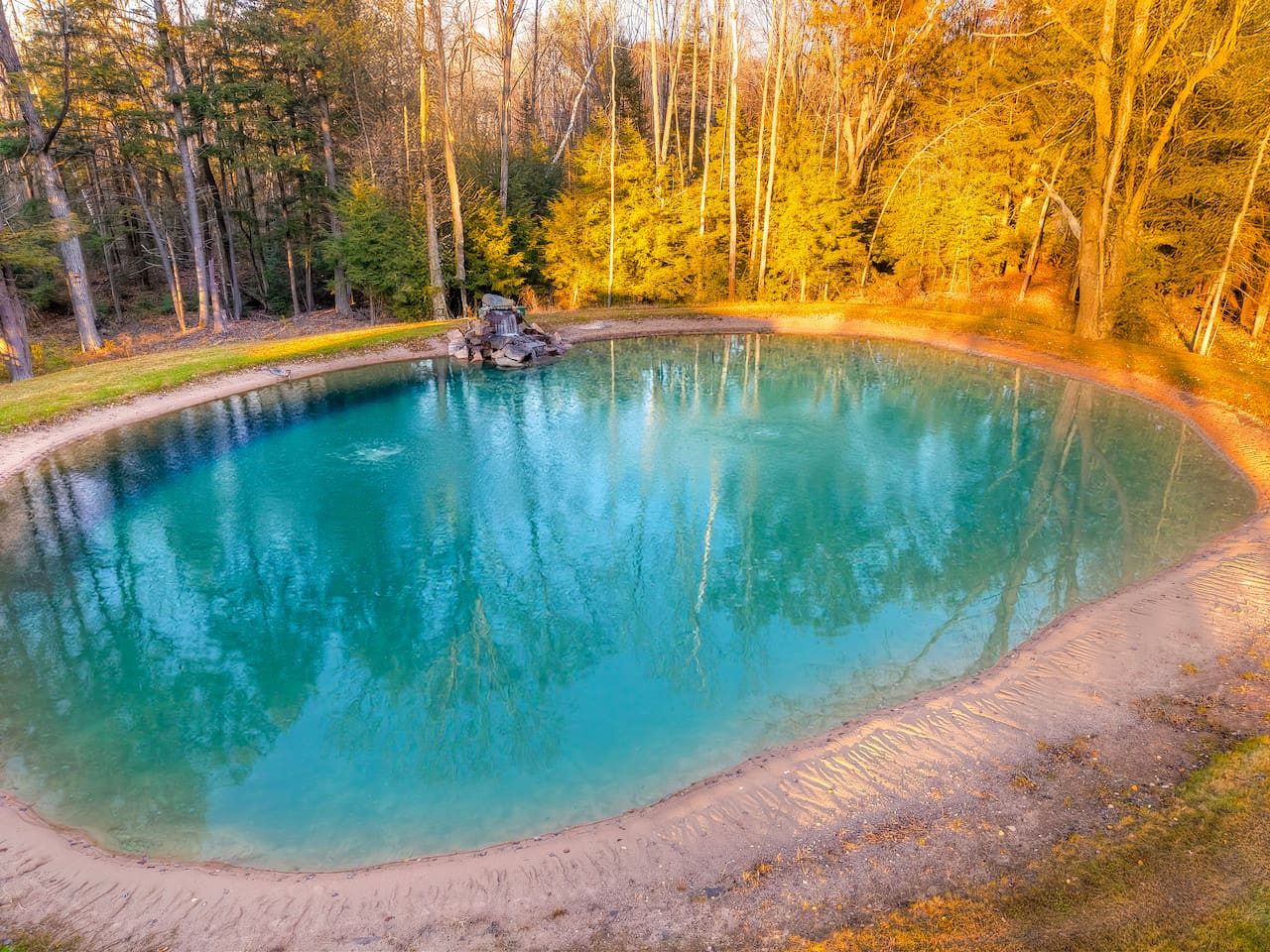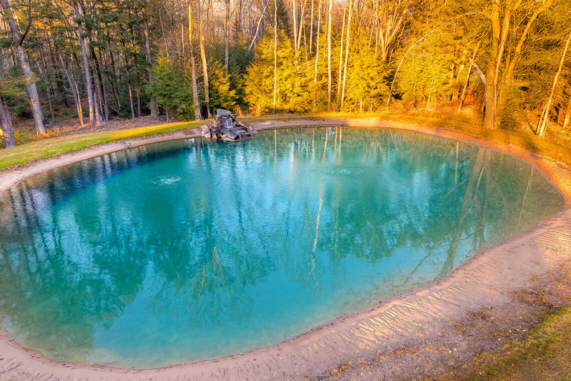 🏊 80’ x 120’ swimming pond with sandy bottom, waterfall, bass & panfish