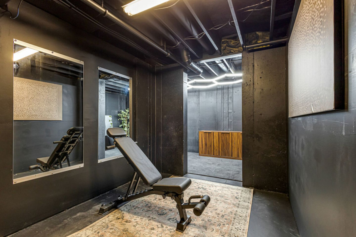 🏋️ Dedicated workout room with bench, weights, yoga mats & more