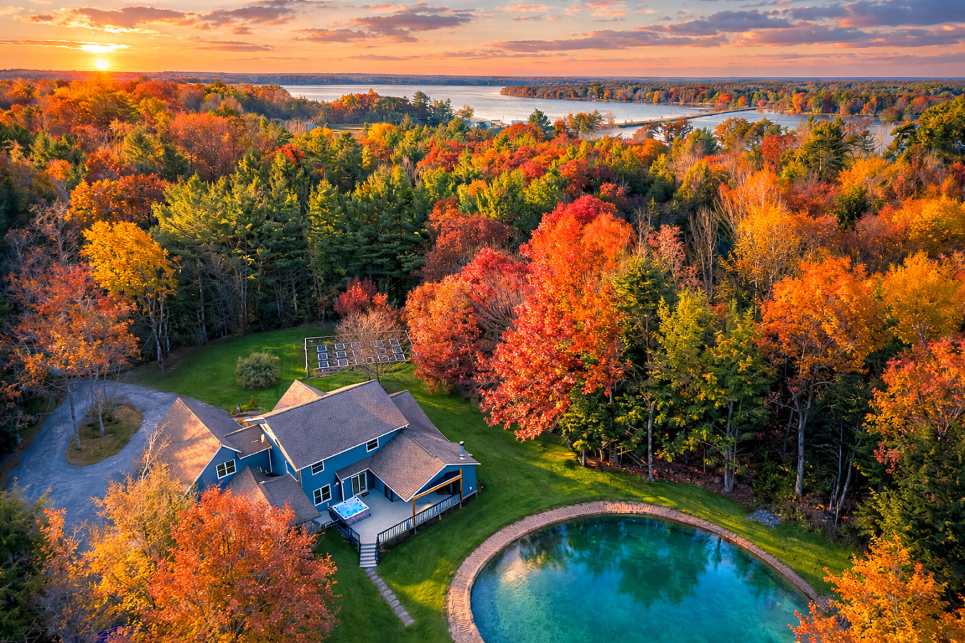 Set deep within 18.5 private wooded acres near Lake DuBay, Hemlock Drift is a rare blend of executive luxury, Northwoods tranquility, and destination-level entertainment. As you arrive, the sound of the waterfall, rustling trees, and total stillness immediately set the tone. Thoughtfully redesigned with over $750,000 in upgrades, this professionally curated retreat delivers total privacy while remaining just 15 minutes from Stevens Point and 20 minutes from Wausau and Granite Peak.