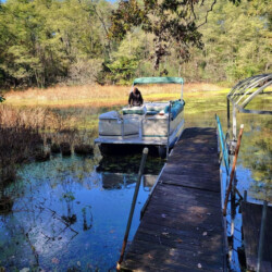 A private dock and channel provide access to the lake 🚤. The channel can be shallow in places, so boats with outboard motors and trim capability work best, such as pontoons.