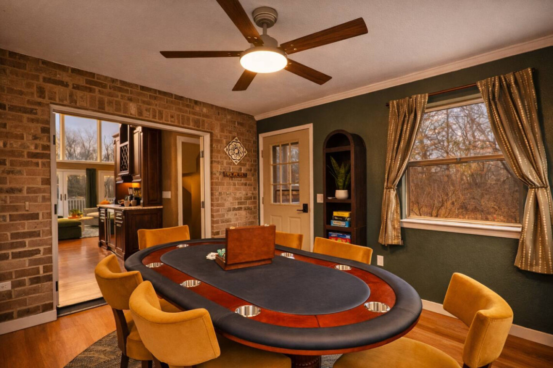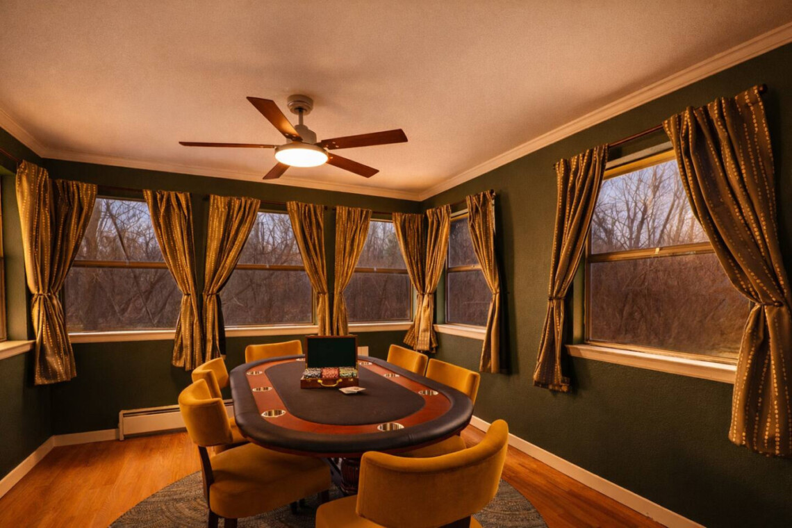 Just off the kitchen you’ll also find a dedicated poker room, perfect for friendly competition and late-night card games.