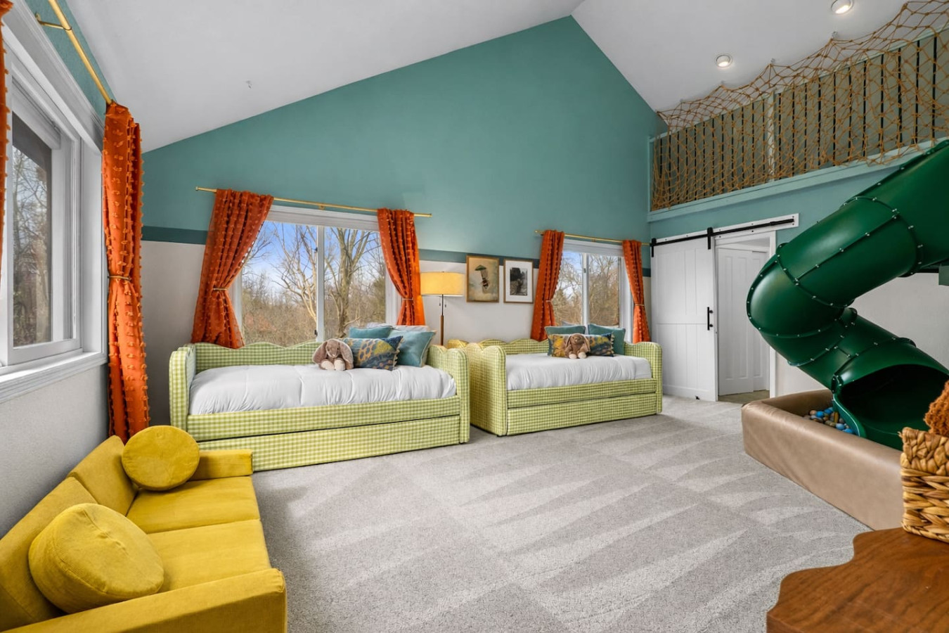 This unforgettable bedroom features 16-foot ceilings and a fully custom indoor playground complete with: