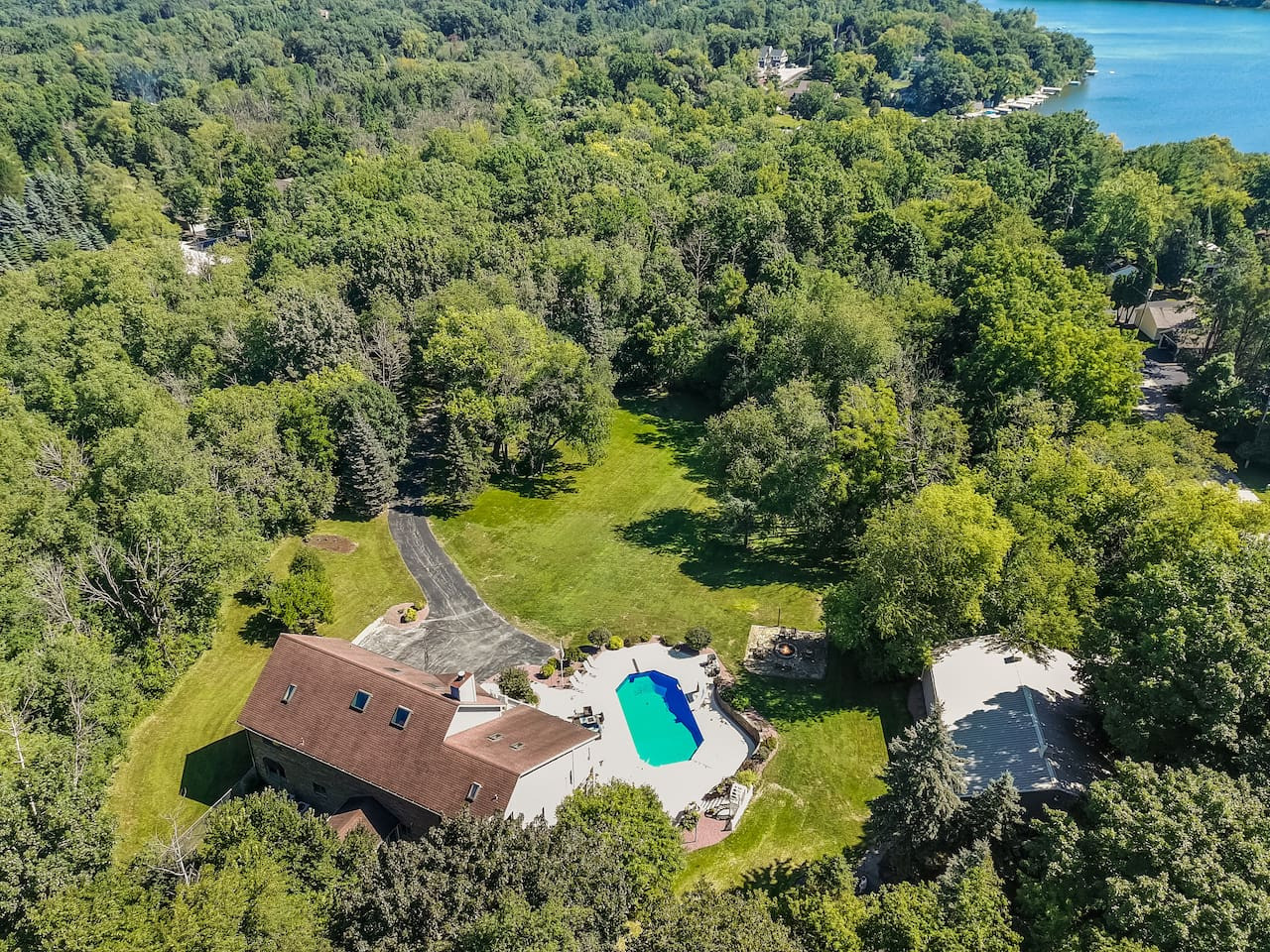 Private 5-acre Lake Beulah estate with pool, hot tub, firepit and stargazing dome