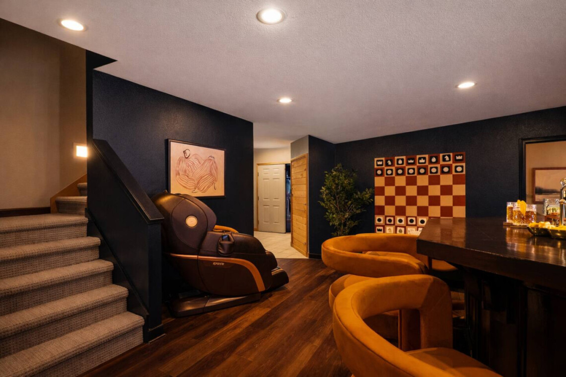 The walk-out lower level transforms the home into a private entertainment lounge designed for unforgettable nights.