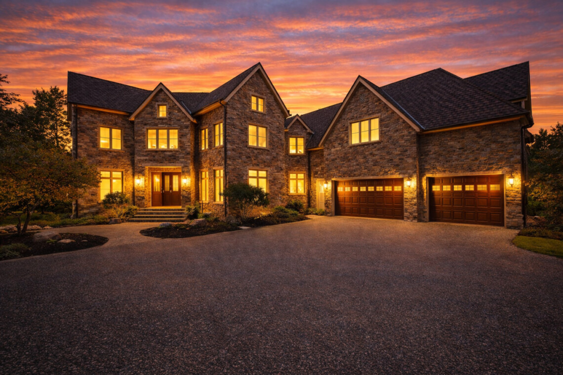 Eagle Point is an 8,000 sq ft private lakefront estate on 5 wooded acres with 300+ feet of shoreline—featuring a 19th hole bar, indoor hot tub + sauna, and space for 16.